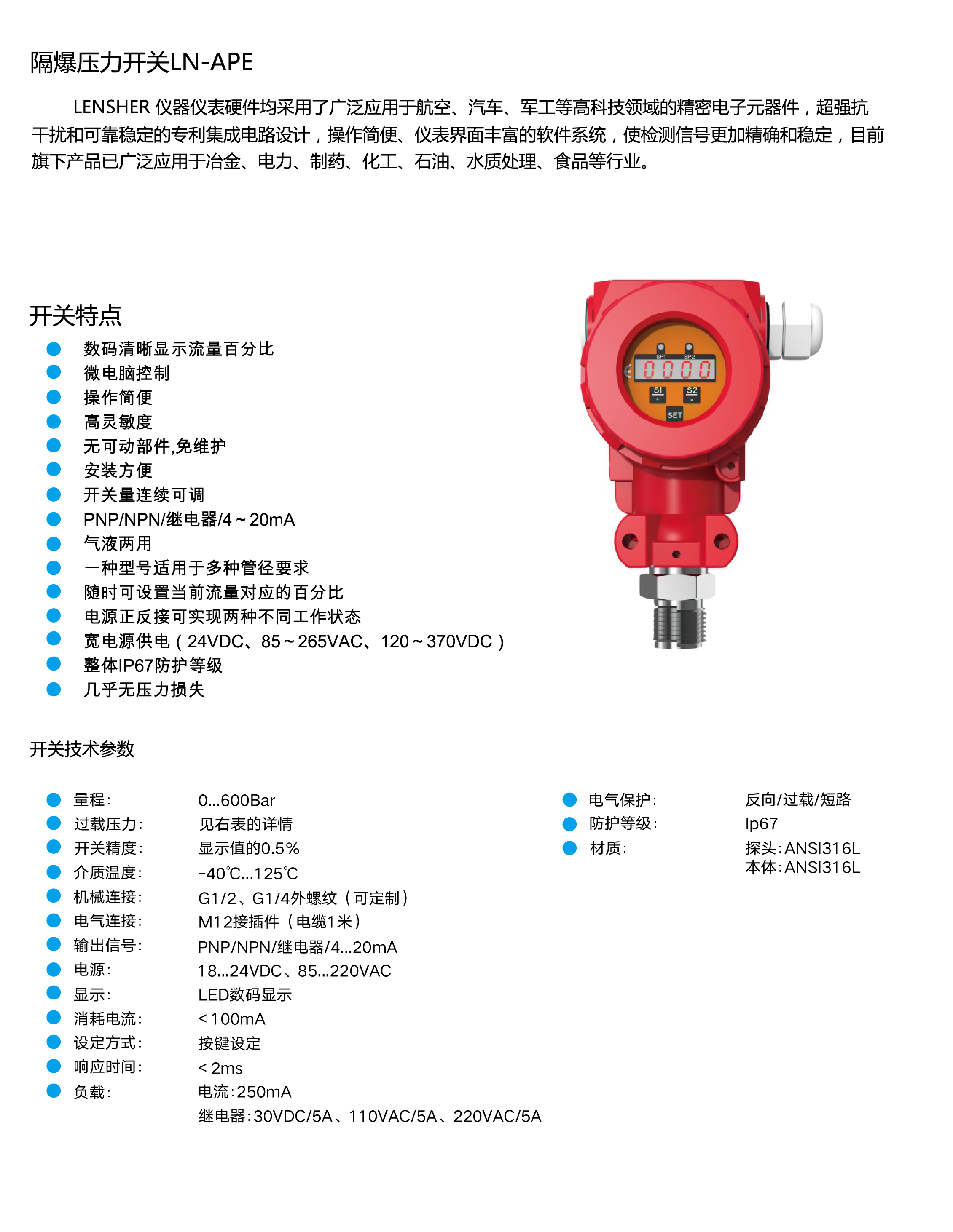 • 下一产品:机械压力开关LN-AP1